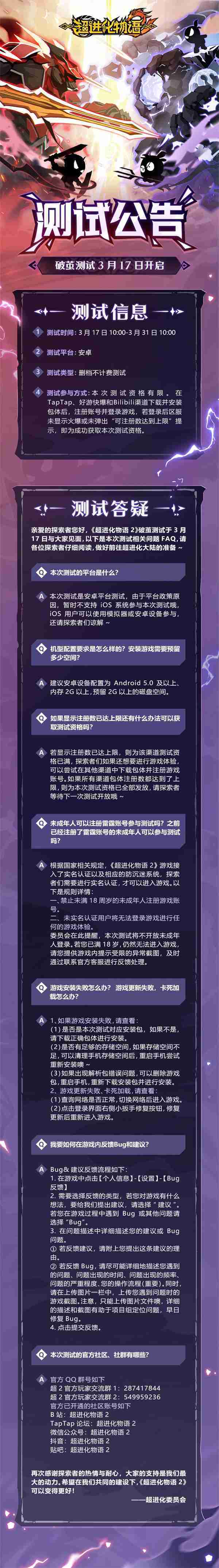 《超进化物语2》首次限号不计费删档测试——「破茧测试」将于3月17日开启,,随我们确认测试细节,,,明天迈出踏上超进化大陆的第一步吧!!