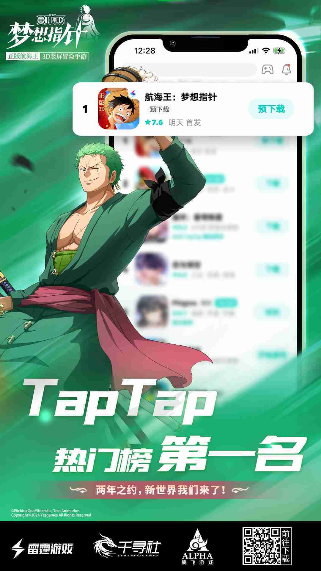 4月1日,,,手游《航海王:::梦想指针》正式公测,,,上线仅2小时不到就登上了App Store免费榜Top1,,与TapTap热门榜第一。。。